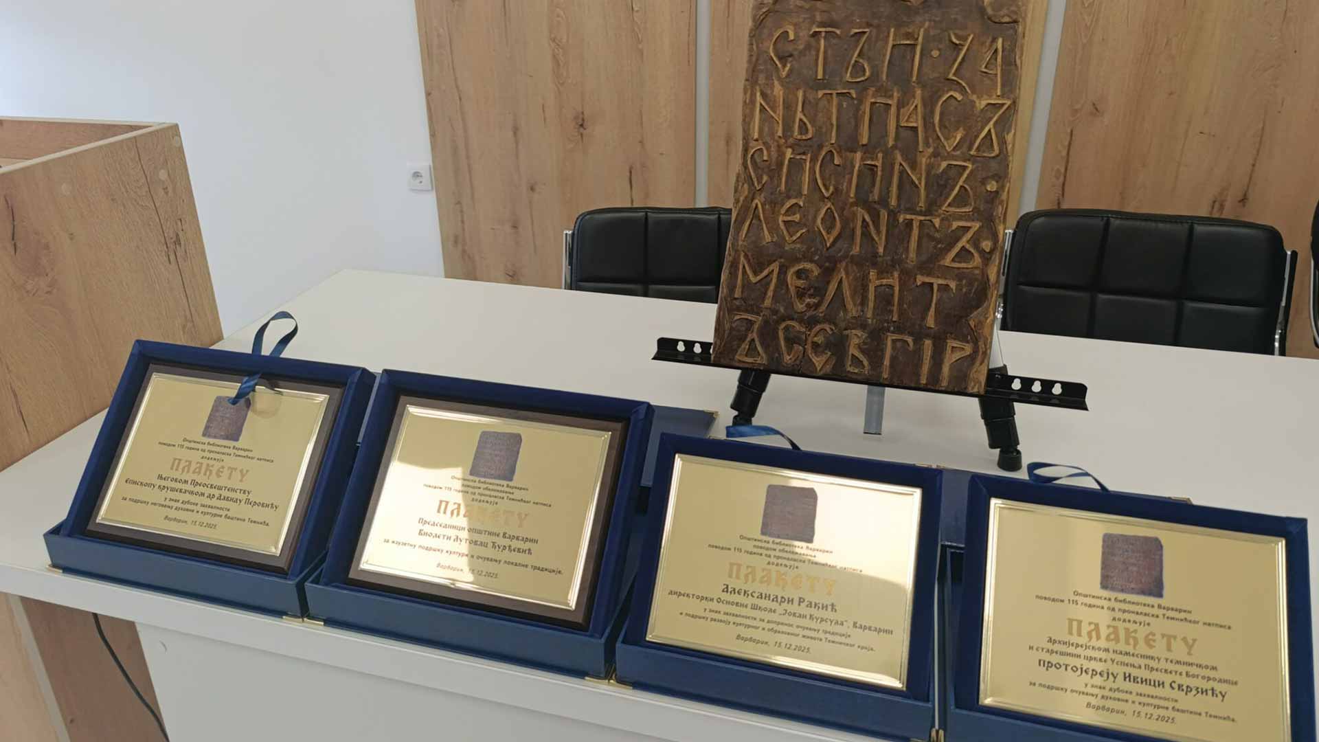 Tokom svečanosti istaknut je istorijski, kulturni i duhovni značaj Temnićkog natpisa, koji predstavlja dragoceno svedočanstvo pismenosti, identiteta i duhovnosti srpskog naroda. Program je otvorila direktorka Opštinske biblioteke Varvarin Violeta Kaplarević, koja je tom prilikom uručila plakete Njegovom Visokopreosveštenstvu Arhiepiskopu i Mitropolitu kruševačkom gospodinu dr Davidu, Arhijerejskom namesniku temnićkom jereju Ivici Svrziću, predsednici opštine Varvarin dr Violeti Lutovac Đurđević i direktorki OŠ “Jovan Kursula” Aleksandri Rakić, u znak zahvalnosti za doprinos očuvanju kulturnog i duhovnog nasleđa.